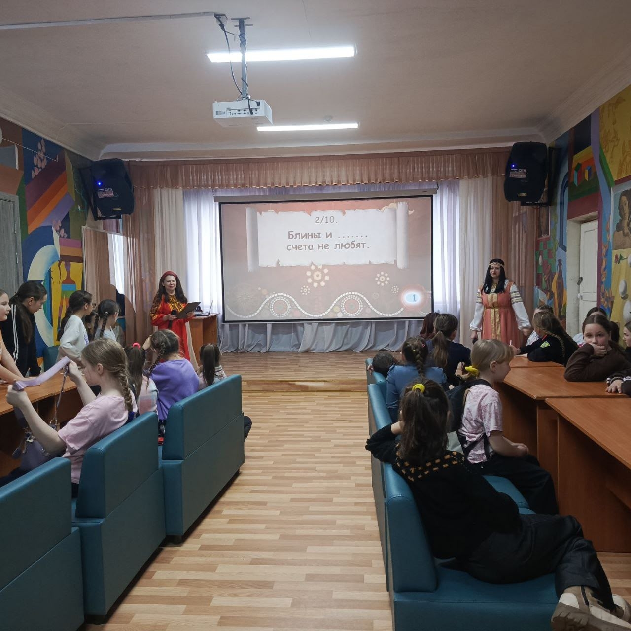 В Центре культуры состоялась увлекательная интеллектуальная битва "Масленичный Квиз", в которой приняли участие самые активные ребята нашего города. Две команды сражались за звание лучших знатоков: команда "Блинчики" и команда "Звёздные блины".