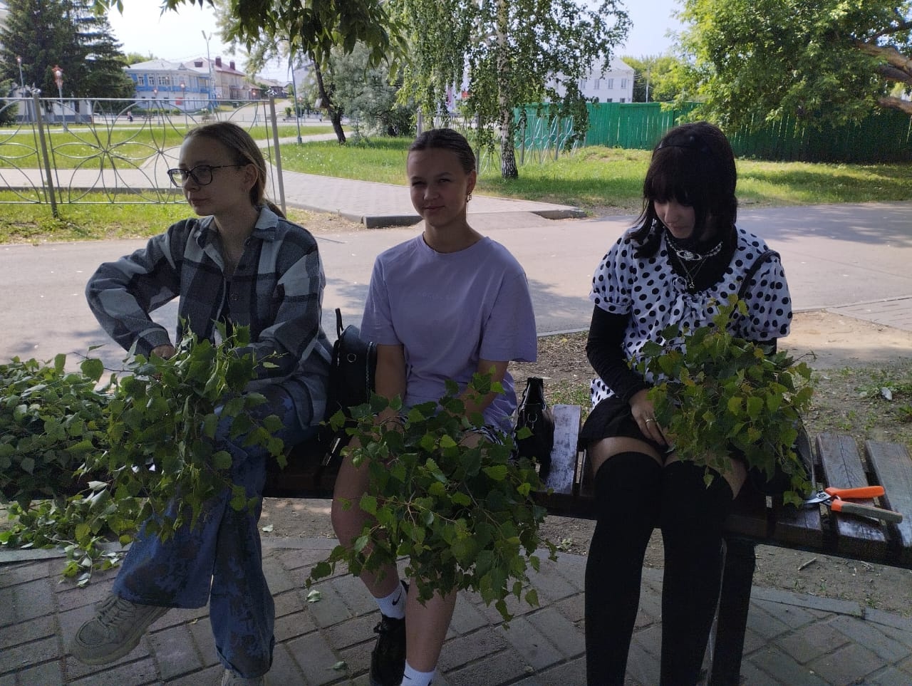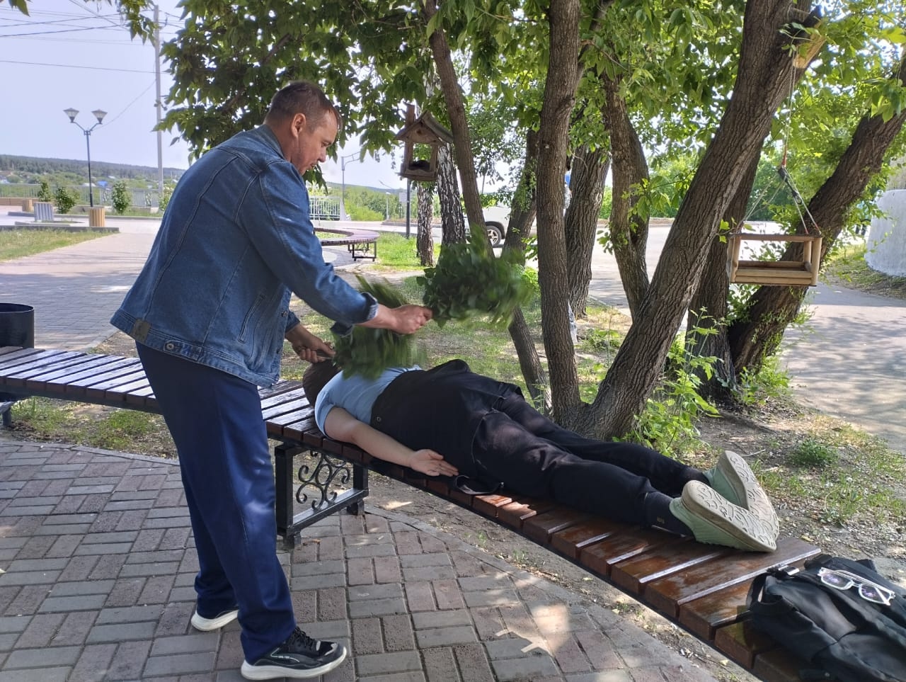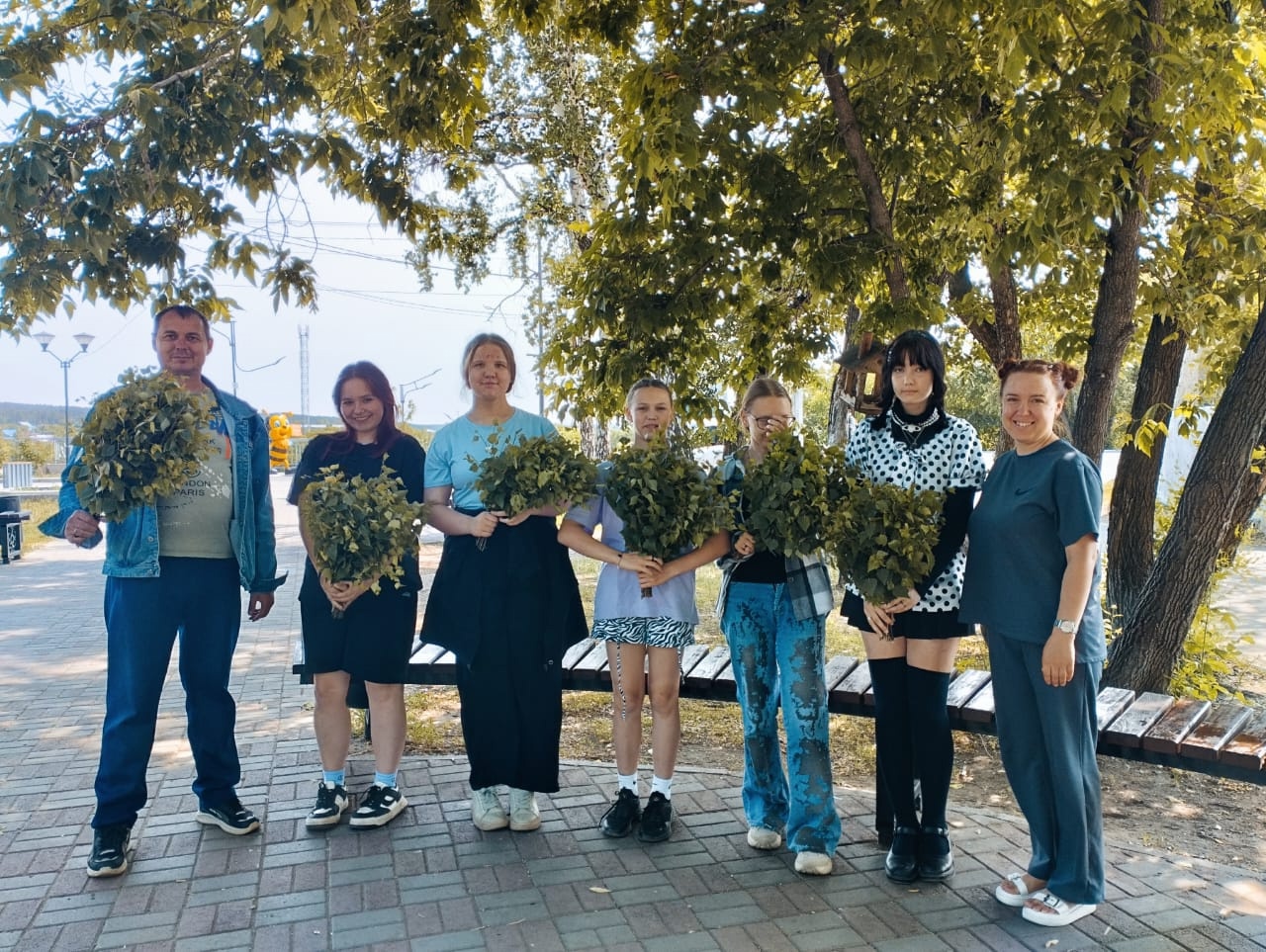 Сегодня в парке "Город радости" прошёл замечательный мастер-класс, посвящённый традиционному русскому ремеслу — вязанию веников!
