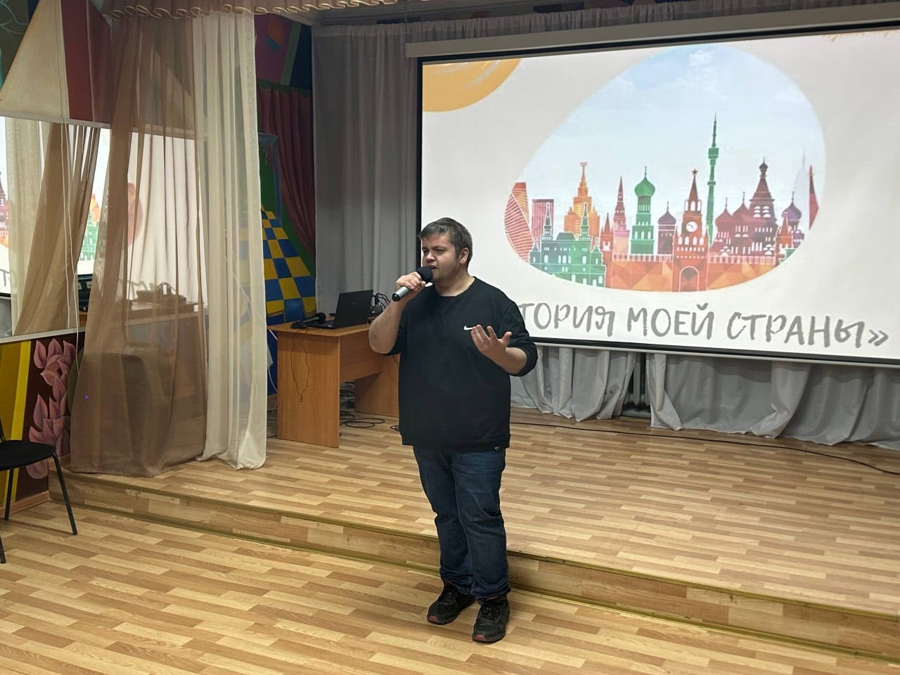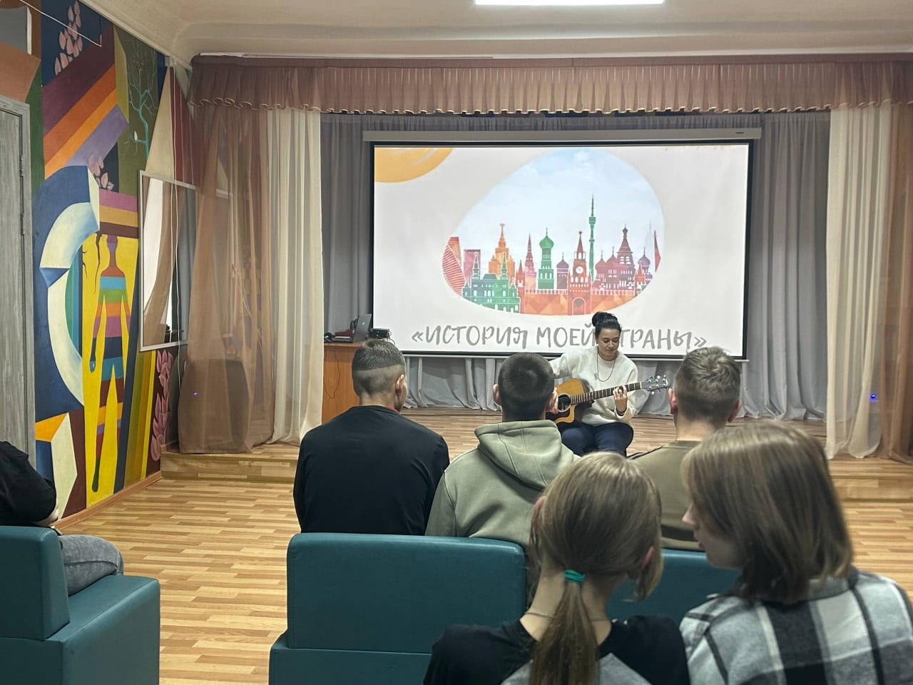 Сегодня в Куртамышском Центре культуры прошло мероприятие "История моей страны", которое включало показ краткого фильма и исполнение патриотических песен. Ребята активно участвовали в мероприятии, громко подпевая любимым песням.