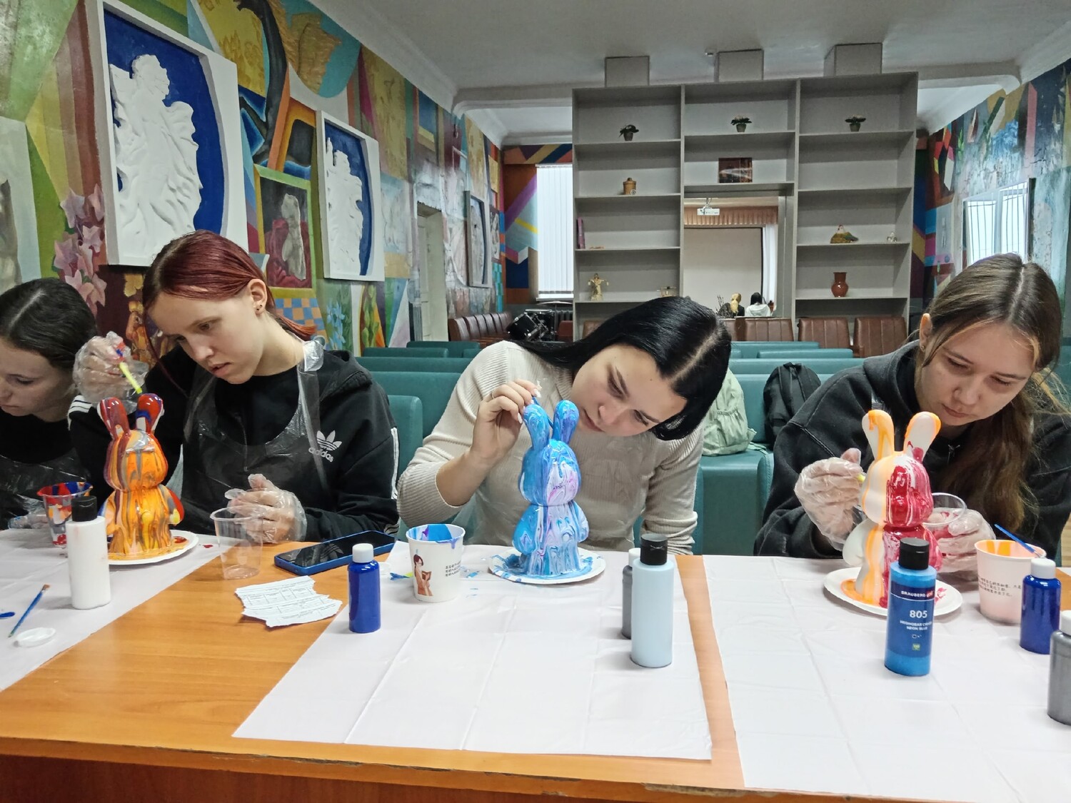 В Куртамышском Центре культуры прошел мастер-класс «Флюид-арт на зайцах». Каждый гость окунулся в мир творчества и фантазии, создав уникальные произведения искусства своими руками. Участникам было предложено погрузиться в технику флюид-арта, добавив яркие краски и выразительность в образ символичного русского персонажа — зайца.