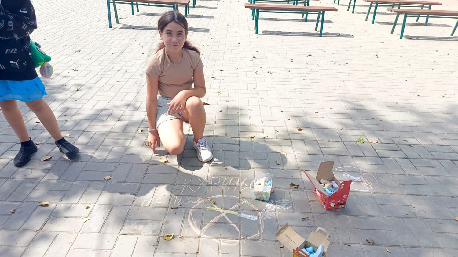 В рамках акции ребята выразили свой протест с помощью спортивного флешмоба и рисунков на асфальте.